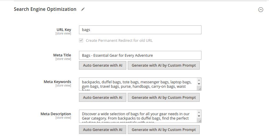Category Descriptions: Enhance category pages with keyword-optimized, high-quality text for better search visibility.