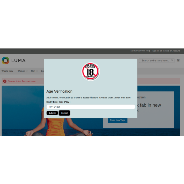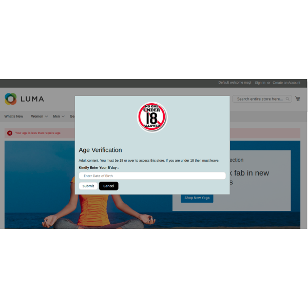 The Age Verification for Magento 2 extension allows customers to view specific store pages only after verifying their age.