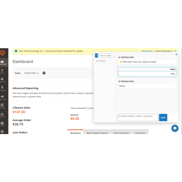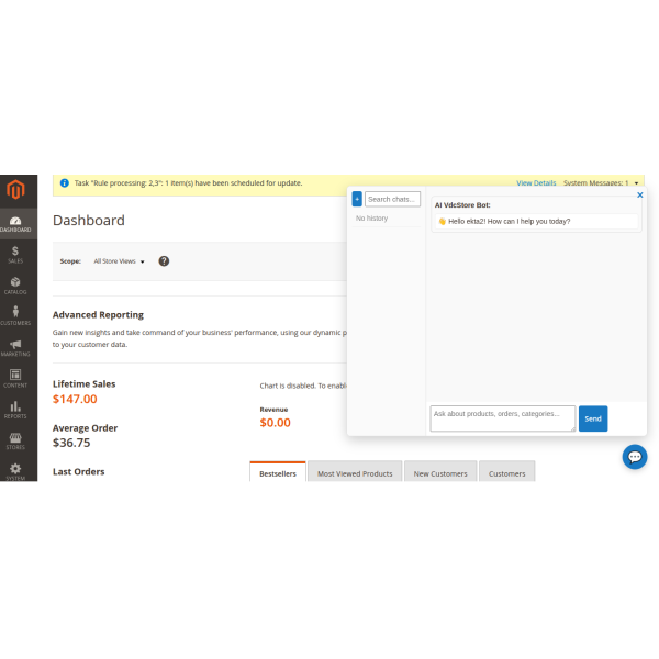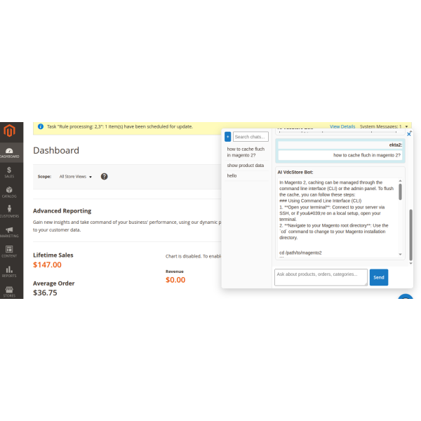 Magento 2 Ai Copilot / Chatbot is an intelligent AI assistant built directly into your Magento admin. Ask questions in plain language to get instant insights on sales, orders, products, and customers, and receive expert guidance—all without coding or SQL.