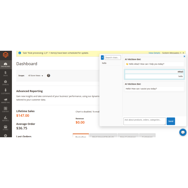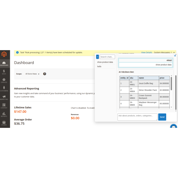 It allows admins to interact with store data using simple natural language. You can instantly get insights like sales, orders, and customer trends directly within the Admin Panel—no technical skills or coding required.