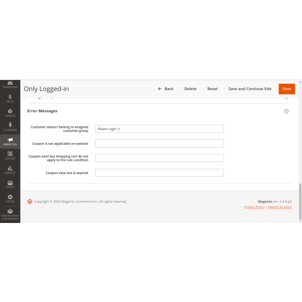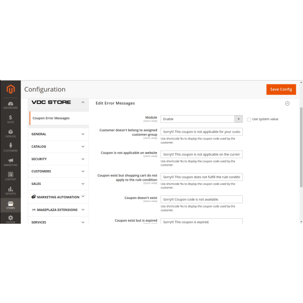 The Coupon Error Message Extension for Magento 2 enhances the user experience by allowing store owners to create customised error messages for coupon code failures based on specific rule conditions.