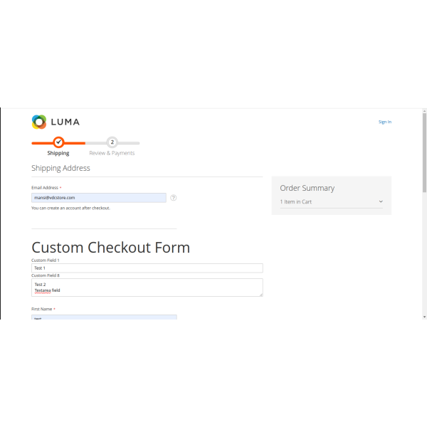 The Custom Checkout Fields extension for Magento 2 allows store owners to personalize the checkout page by adding extra fields to gather additional customer information, such as order details, preferences, or comments.