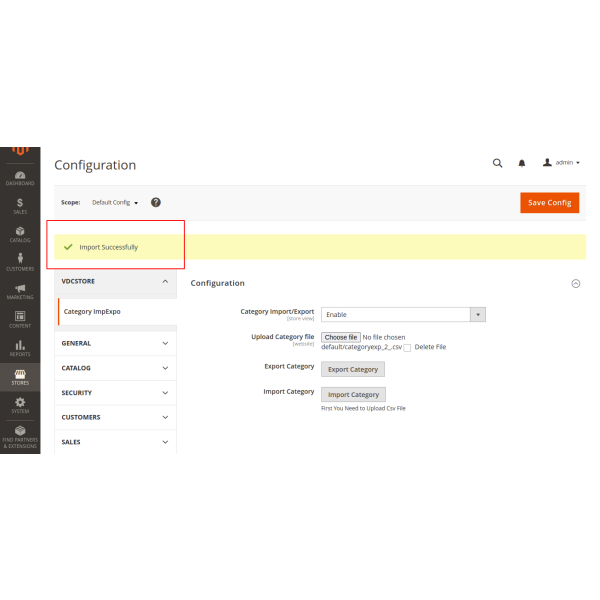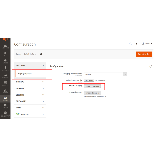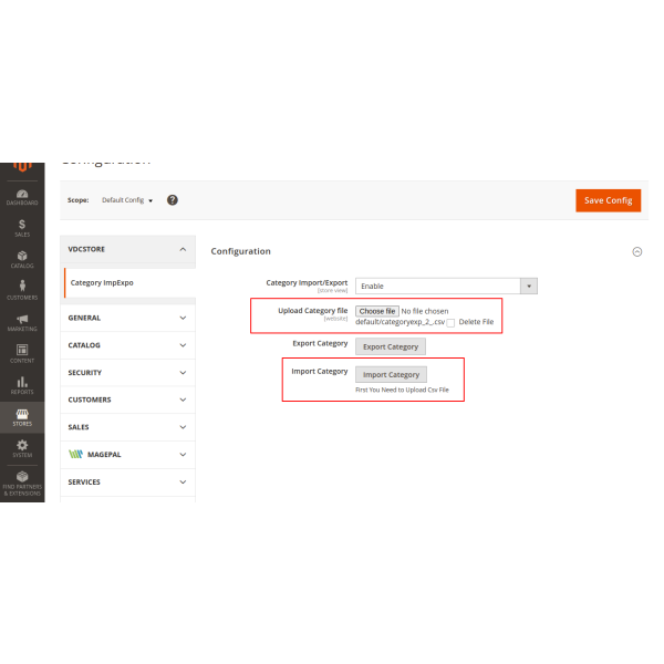 This extension will import/export root categories, and subcategories. Upon installing the extension admin can belong to System. Under the province Category of data transfer, there are two options.
