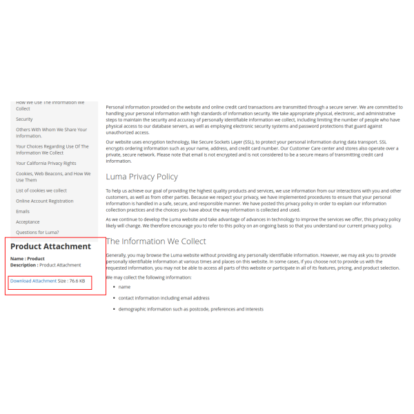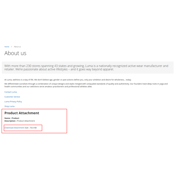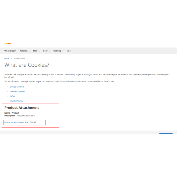 The Product Attachment Extension helps you provide additional useful resources, such as product manuals, size charts, or warranty information, directly on product pages. This enhances customer experience by offering relevant information to aid in their purchase decision.
