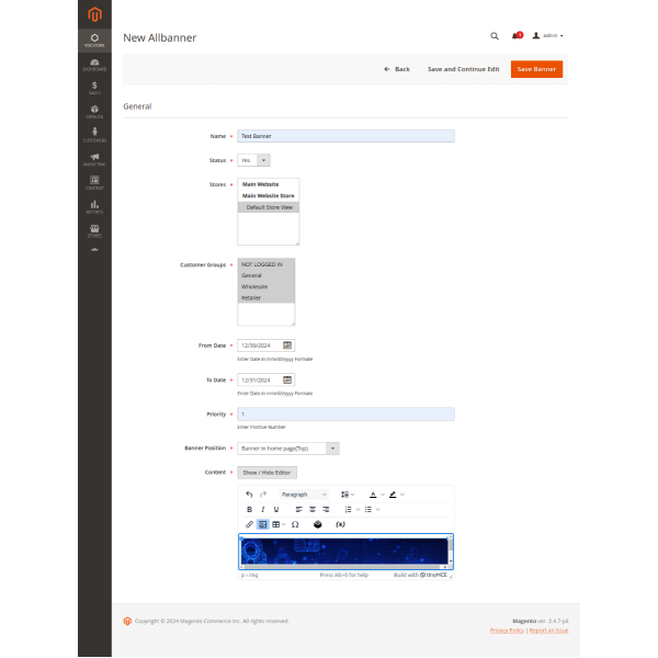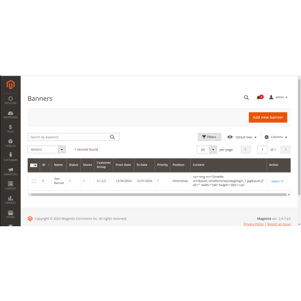 The Magento 2 Promo Banners Extension helps you create eye-catching banners to highlight promotions, deals, or announcements. Display banners strategically on any page, attract customer attention, and boost sales effortlessly. Enhance your marketing campaigns with this powerful tool!