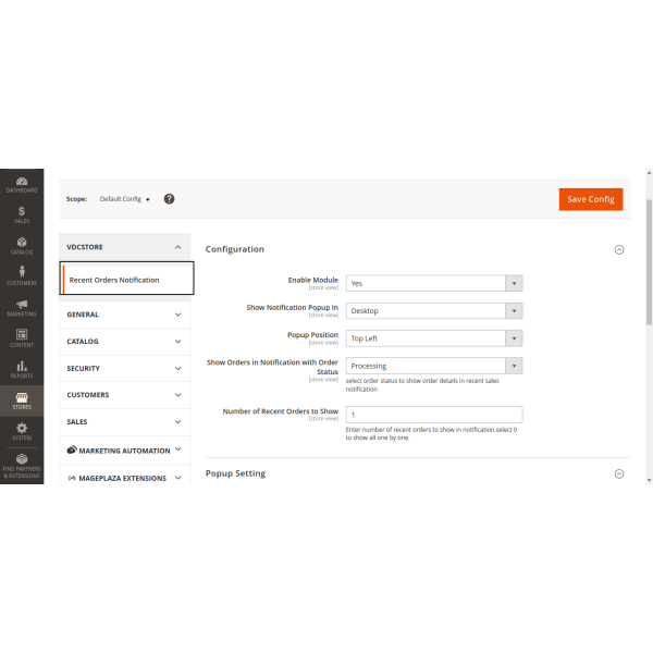 The Recent Sales Notification is the perfect extension which shows the recent orders and pending orders with other status as well.